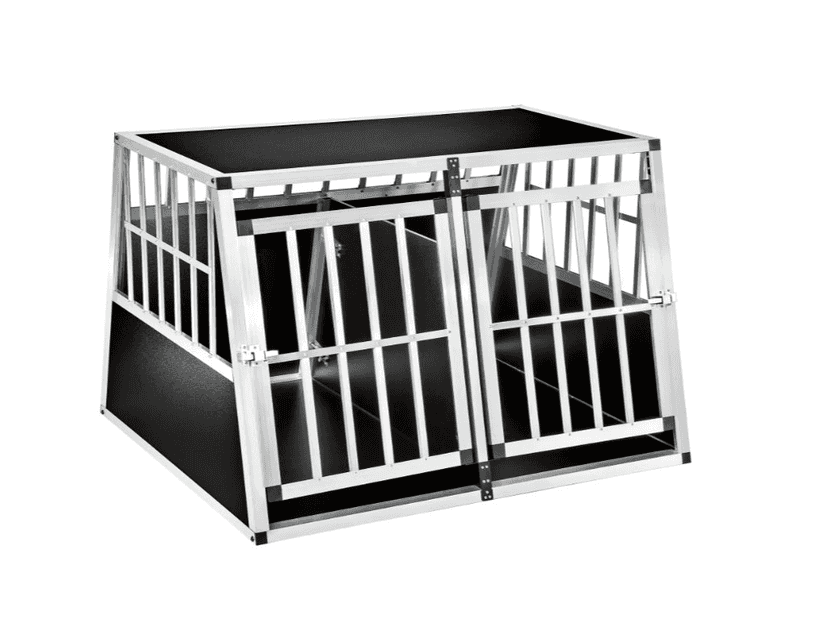 Dvojitá přepravka pro psy se šikmou zadní stěnou bez přepážky.Celkové rozměry (ŠxHxV) 104 x 90,5 x 69 cm Úhel náklonu přední i zadní: 75 ° Hmotnost: 20 kg Materiál: Hliníkové profily a dřevotřískové desky, hrany z plastu Více komfortu při jízdě Místo odpočinku a útočiště Vysoká kvalita a funkčnost Pevná konstrukce Praktické dvoukřídlé dveře.MOžno zaslat.