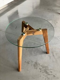 Konferenční stolek, dřevo a sklo, průměr 40 cmStolek je ve vynikajícím stavu, nemáš žádné známky poškození.