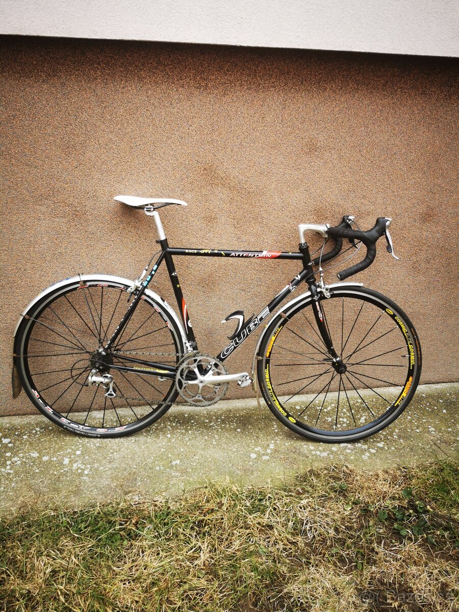 Prodám silniční kolo používané jako zimák s blatníky. Výbava Shimano 105, kliky ultegra, řazení 2x9. Převodníky 53x39, kazeta 11-25. Prodávám tak jak je na foto. Možné sundat blatníky a použít jako klasické kolo. Kolo nastaveno na 180cm. Vel. rámu 58cm. Vše seřízené a plně funkční. Dohoda.