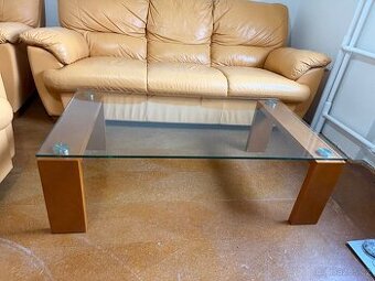 Konferenční stolek – sklo + dřevo