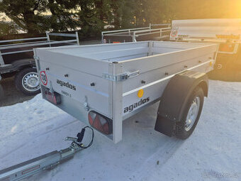K prodeji nový model přívěsu Agados Handy 3 Nebrzděný přívěs s celkovou hmotností 750 kg Ložná plocha 2050x1090x350 mm. - masivní V-oj a hliníkové sloupky - plechové bočnice 350 mm s Al-Zn úpravou - značková nebrzděná náprava Knott - podlaha je vyrobená z kvalitní protiskluzové překližky - 4 ks kotvících ok v podlaze přívěsu - kola 13" V ceně jsou na bočnici přívěsu namontované třmeny pro uchycení plachty nebo sítě + opěrné kolečko s držákem pro snadnou manipulaci