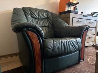Nabízím kvalitní koženou sedačku v olivové barvě.dvě velká křesla a gauč.