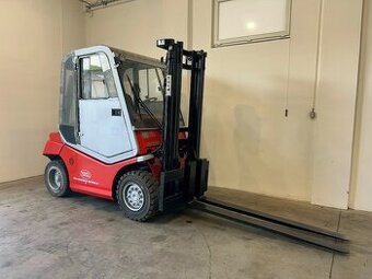 Prodávám použitý VZV BT C4D 450E, vysokozdvižný čelní vozík s nosností 4500 kg a zdvihem 3200 mm. Stavební výška 2550 mm, délka 3000 mm, šířka 1400 mm, hmotnost 6660 kg. Pohon diesel, zdvihací zařízení duplex, typ pneu superelastická (SE). Rok výroby 2008, motohodiny 11908 MTH. Výbava: boční posuv, kabina. Cena bez DPH 299 000 Kč.