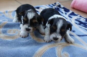 Cena: V textu. Naše malá CHS nabízí k rezervaci štěňátka biewer jorkšírů s PP, 2 pejsky a jednu fenku. Štěňátka vyrůstají v rodině, jsou vymazlená, zvyklá na děti i kočku. Štěňátka jsou učena na plenku, jsou pravidelně odčervována a už začínají papat. Při odběru ( začátkem dubna) budou očkovaná, čipovaná a prohlédnutá veterinářem. Do nových rodin si odnesou pet pas, rodokmen od klubu BKV, kupní smlouvu, potvrzení o zdravotním stavu od veterináře a výbavičku do začátku. Cena pejsků je 20000,- Kč, fenky 28000,-Kč. Návštěvy uvítáme. Prosím volejte - jen vážní zájemci.