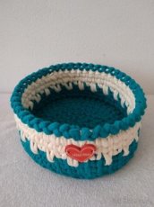 Ručně háčkovaný košík o velikosti 16x7,5 cm -zásilkovna 79 Kč, balíkovna pošty za 69 Kč nebo osobní odběr po domluvě