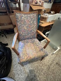 Prodám pohodlné retro křeslo. Čalounění sedáku je opotřebené.