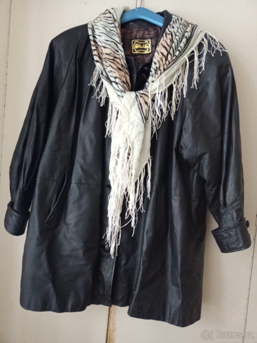 Černý dámský kožený 3/4 kabát. Pravá měkká kůže, příjemně se nosí.Velikost 48/50.