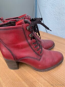 Prodàm hezké kožené zateplené boty zn.Tamaris vel.40 výška podpatku 6,5 cm barva vínová