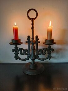 Secesní dvouramenný litinový svícen