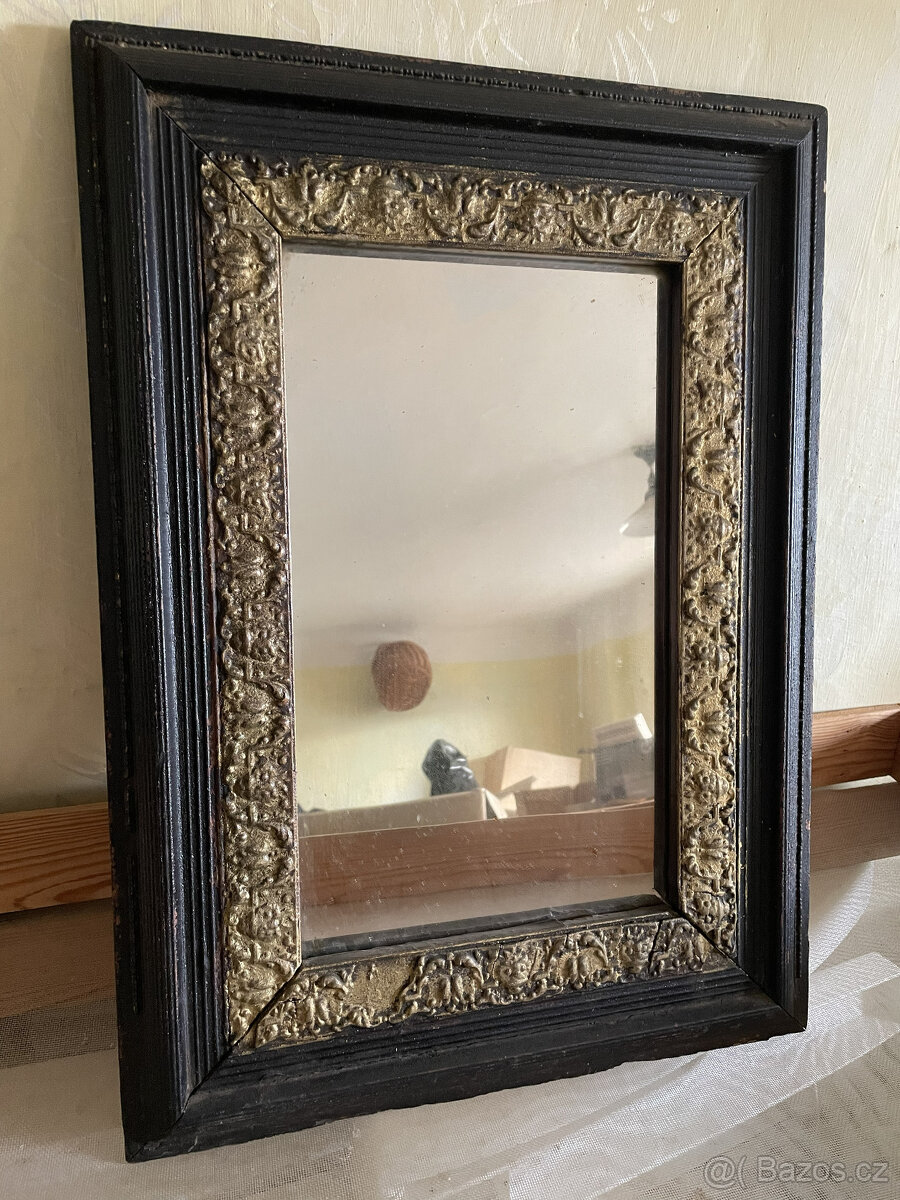Prodám starožitné zrcadlo z půdy. Vše původní, zastaralé, ale jinak nepoškozené, ideální na chalupu, rozměry 44 x 60.