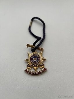 Jedná se o odznak klubu Guards Polo Club s nápisem plaer 2015 . Je to pozlacený odznak s modrým a červeným smaltem , odznak slouží k identifikaci příslušnosti ke klubu a ročnímu hraní .Klub založil Princ Philip vévoda z Edinburghu r. 1955 . Odznak má hrací číslo 138 a je pravý cena 600 Kč + zásilkovna, balíkovna