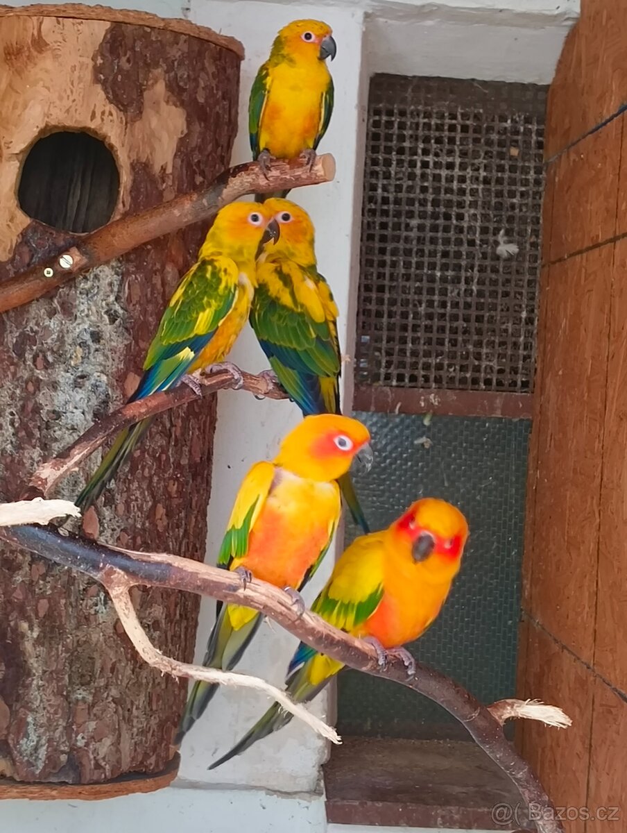 Prodám loňská mláďata Aratinga sluneční ...Odchov pod rodiči ...Kroužkovaný ..Test DNA ... Pouze ,už jen samičky ....Přeštice