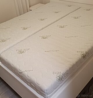 Prodáme 2 kvalitní zdravotní matrace Aloe Vera s magnetoterapií: - rozměr: 90×200 cm - výška: 21 cm - tvrdost: H3 + H4 (pro rozdílné preference spánku) - bez proležení - vždy používané s chráničem Původní cena: 8 000 Kč / ks - zakoupeno u matrace-drevocal.cz Cena nyní za 2 ks: 4 900 Kč Informace: Magnetoterapie podporuje regeneraci a kvalitní odpočinek, matrace stále ve skvělém stavu, bez proležení, zdravotní typ vhodný pro dlouhodobé používání V případě zájmu je k prodeji i postel a noční stolky (viz na obrázku s matracemi, postel je dřevěná z masivu 180x200, včetně roštů a úložného prostoru za 16 900,- a 2 noční stolky 1 490,- za kus, komplet vše s matracemi je za zvýhodněnou cenu 22 900,-) 📍 Osobní odběr