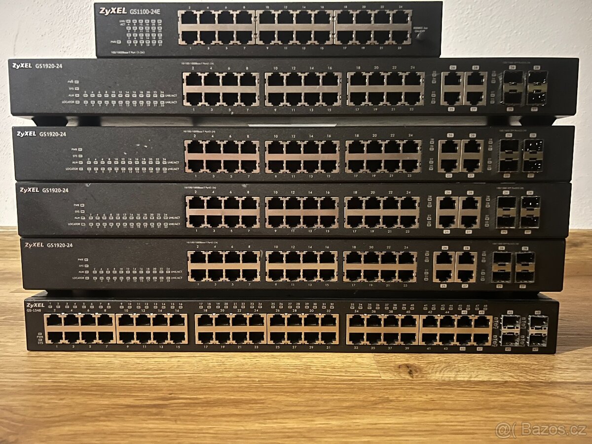 Mám na prodej switche, všechny vyčištěné, otestované, dané do továrního nastavení. K vyzvednutí Brno – Komárov. SW1 -ZyXel GS1100-24e 900,- SW2 -ZyXel GS1920-24 1900,- (sleva za trochu zdeformované oplechování kolem combo portů 25 a 26- nemá vliv na funkčnost) SW3 -ZyXel GS1920-24 2200,- SW4 -ZyXel GS1920-24 1900,- (sleva za drobné skrábamce na vrchní straně chasi- nemá vliv na funkčnost) SW5 -ZyXel GS1920-24 2200,- SW6 -ZyXel GS1548 2600,- SW7 -HP 182024g (J9980A) 1600,- SW8 -HP 182024g (J9980A) 1600,- SW9 -HP 182024g (J9980A) 1600,- uši pro usazení do racku 50,-