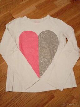 Dívčí bílé tričko s dlouhým rukávem a s potiskem srdce velikosti 10-11 let