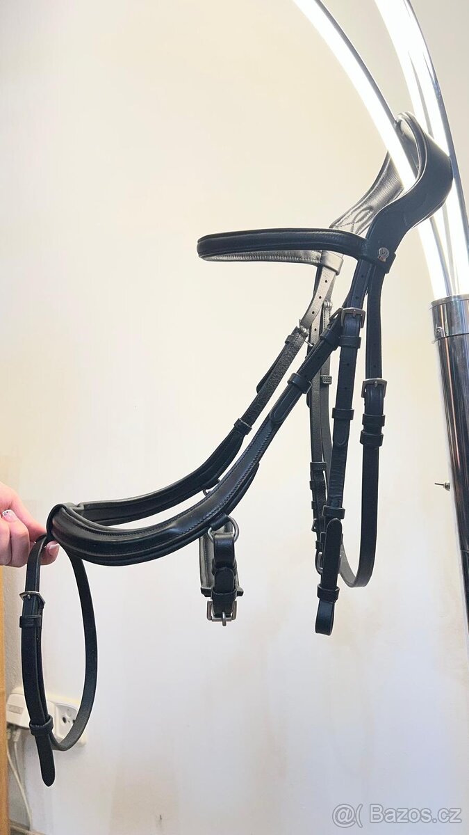 Nová černá uzdečka Kentaur s měkoučkým anatomickým nátylníkem a nánosníkem. Měkká kůže. Velikost cob. Nikdy na koni. Cena 1200,-