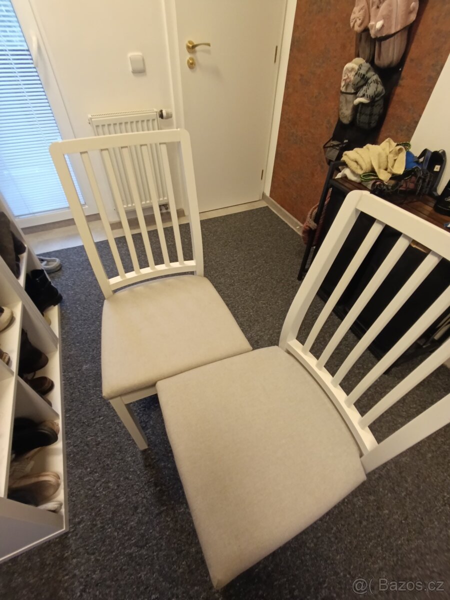 Prodám 2 ks židle z Ikaea, používané 2 měsíce. Bílá barva, šedý sedák. Pohodlný polstrovaný sedák s podpůrnou pěnou je čalouněný hebkou béžovošedou látkou Tibbleby. Pevný a odolný rám židle z masivního tvrdého dřeva. Hloubka: 54 cm Výška: 90 cm Hloubka sedáku: 40 cm Výška sedáku: 48 cm Šířka sedáku: 42 cm Testováno pro: 110 kg Šířka: 42 cm Cena za oba dva kusy 1300,- (polovina pořizovací ceny)