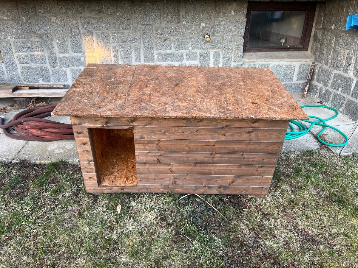 Prodám krásnou zateplenou boudu pro psa. Odklápěcí střecha. Velikost 120 x 60 cm. Vstupní otvor 25 x 45 cm. Skoro nepoužitá. Vlastní odvoz. Včetně podložek.