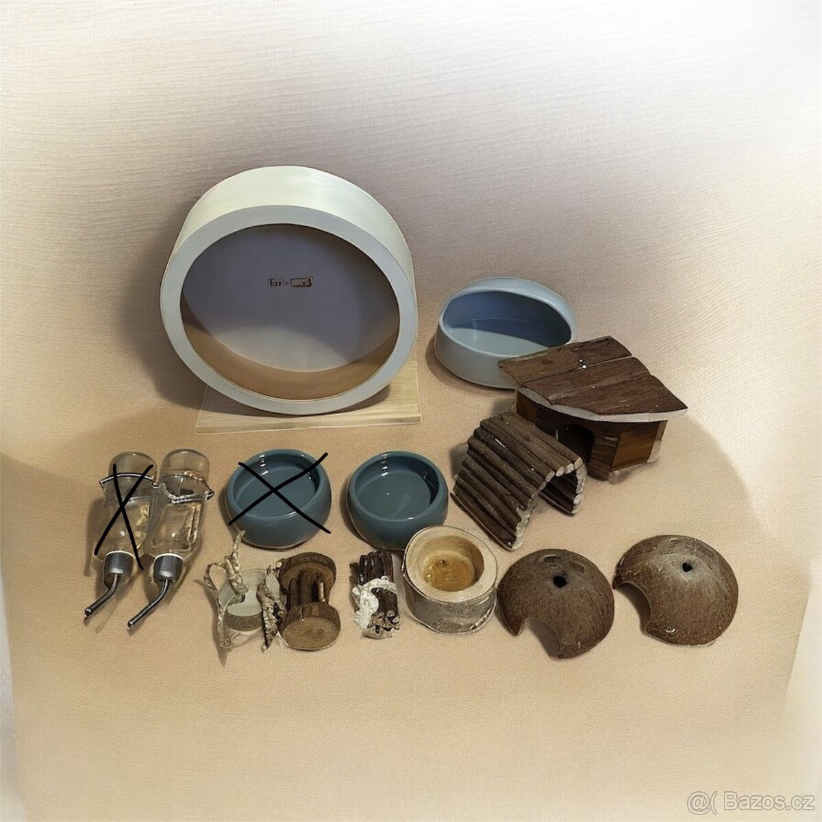 Kompletní set pro křečka (vhodné pro syrského křečka). Kolečko, koupelna, domeček, 3x ukryt, miska, napáječka, 3x hračka. VŠE DOHROMADY JAKO KOMPLET!