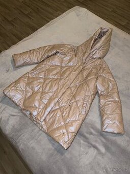 Stylová jarní bunda v elegantní pudrové barvě, která se na světle jemně leskne. Lehká, pohodlná na jaro či podzim. Zapínání na druky, dobře drží tvar. Rozměry: • délka: 80 cm • délka rukávu: 62 cm • šířka přes prsa: 60 cm Stav velmi dobrý, nošená minimálně.