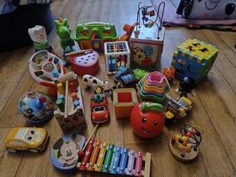 Prodám hračky nenáročným rodičům. Mají známky používání. V dřevěné hračce s lovem housenek, chybí jedna housenka.