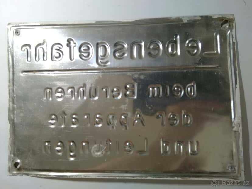 Prodám starou ceduli dovezenou z DE, délka 24 cm šířka 16.5 cm. Buď osobní odběr a nebo možnost poslání Balíkovnou. Reaguji pouze na odpovědi s VAŠÍM TEL.ČÍSLEM !!!!! a nebo volat.
