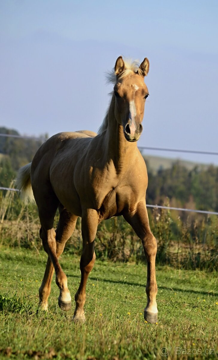 Cena: Dohodou. Prodáme vymazleného palomino quarter horse hřebečka narozeného 12.4.2025. 🐴Otec: Golden Discoboy po Golden Little Pep 🦄Matka: AP Pretty Cash po Ap Genuine Doc Hat Hřebeček má přátelskou povahu, je velmi kontaktní a vychovaný, není lekavý. Denně v kontaktu s člověkem, zvyklý na běžnou manipulaci (vodění, procházky do přírody, zvedání nožek, úvaz, nastupování do vozíku). Pravidelné korektury, očkován a je několikrát odčervený. Do zimy byl v režimu 24/7, nyní chodí na noc do boxu. Je velmi pěkně stavěný, korektní plus má velkou výhodu, že má nohy bez odznaků. Po rodičích předpoklad mohutné postavy. Bude vhodný na rančovní disciplíny nebo jako super rodinný koník. USA certifikát vyřízen vč. panel testu s výsledkem 6panel N/N. První 3 fotky z října, ostatní z léta. Poslední fotky rodiče. První kontakt prosím mailem, nebo pošlete sms (špatný signál) Quarter horse AQH QH AQHA