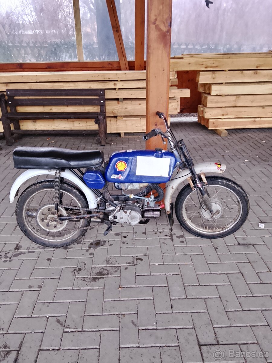 Dobrý den,prodám tohoto mustanga je v pěkném stavu, mustang je bez TP, motorka je plně pojízdná a jede moc pěkně za plynem,má pěkný výfuk chromovaný a řiditka jsou taky moc pěkné jinak motorka startuje na první druhé kopnutí a přední masku a světlo dám k motorce na motorku jsem kupoval dost věcí při jakém kolik dotazů mě neváhejte kontaktovat