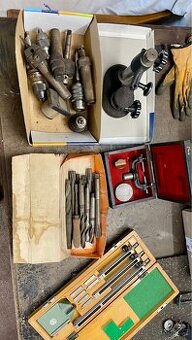 Prodam vybaveni do dilny. Pouze vse dohromady tak jak je na foto. Svetla, stojan, merky, vrtaky a dalsi