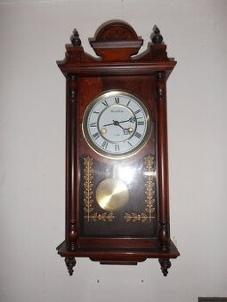 prodám repliku starožitných nástěnných kyvadlových hodin viz. obr. Rozměry: 65x29x14cm. Pohon strojku tužkovou baterií AA.