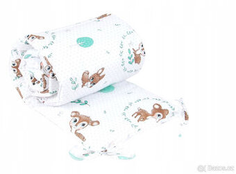 Mantinel na postýlku je v rozměrech : výška 30 x délka 180cm. Výplň je plněna měkkým, polyesterovým, silikonovým vláknem o 300g/m2. Přichycení na mašle. Nový, nerozbalený.