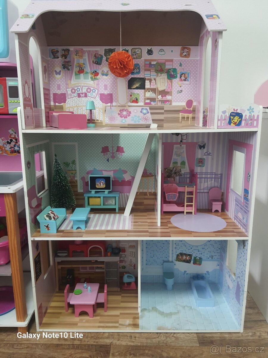 Prodám velký dřevěný domeček pro panenky včetně veškerého vybavení a doplňků, které jsou vidět na fotografiích (nábytek, auto, pejsci, doplňky atd.). Domeček je hodně používaný – stav viz foto (oděrky, flíčky, samolepky..). Je ale stále plně funkční a ještě dobře poslouží. Šikovný rodič může případně opravit nebo upravit podle sebe. 📍 Pouze osobní předání. 📦 Nikam neposílám. 💰 Cena pevná 300 Kč – o ceně nesmlouvám. V případě zájmu pište zprávu.