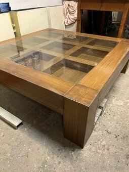 Prodám kvalitní konferenční stolek z dubového masivu se skleněnou deskou. Masivní provedení, pevná konstrukce, nadčasový design. Vhodný do moderního i klasického interiéru. Rozměry: • délka: 140 cm • šířka: 140 cm • výška: 40 cm • nohy: 16 cm Stolek je ve velmi dobrém stavu, bez známek používání. Více informací v SMS