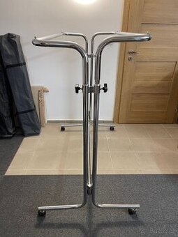 Stojan na oblečení chromovaný, ze zrušeného obchodu. Prodám velký chromovaný stojan na oblečení do obchodu. Výška 140 cm, délka 130 cm, šířka 80 cm. Ze zrušeného obchodu. Lze lehce demontovat. Cena 2500,-
