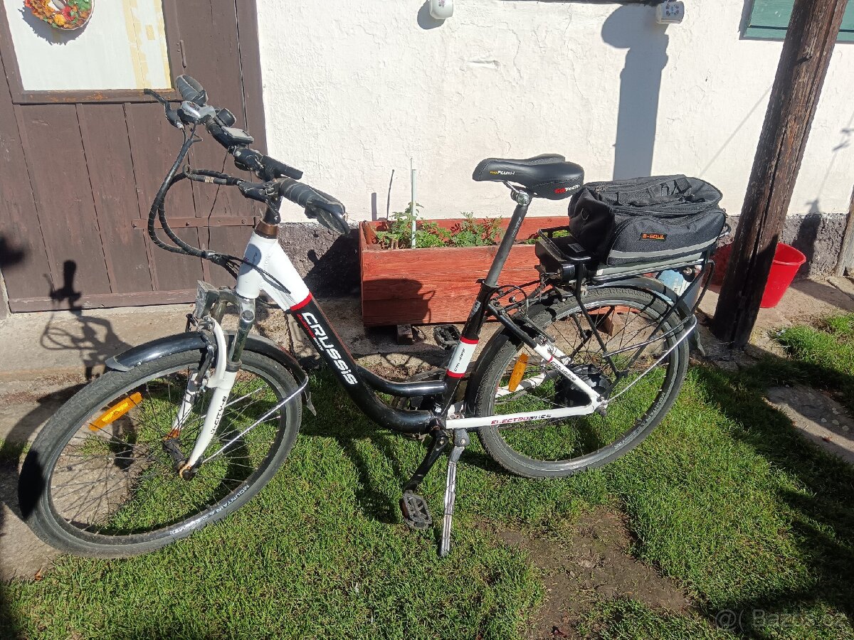 Prodám již nevyužívané elektrokolo. Za tuto sezónu na něm bylo najeto asi jen 80km. Kolo je v dobrém technickém stavu jako ložiska přehazovačka řetěz vidlice atd... Teď k baterce... Kolo na jedno nabití což trvá cca 2,5hodiny ujede 20km takže pro někoho na dojíždění do práce nebo na krátký výlet jen nakoupit ideální. Na delší trasy to není. Kolo nové bylo asi za 35000kč nynní vzhledem ke stavu baterky cena 7500kč. Dohoda možná. Určitě by šla repasovat ale to by už musel sjednat nový majitel a samozřejmostí je vyzkoušení a následná domluva. Má pohodlné nastupování, bylo pro důchodce. Součástí je i tachometr, nabíječka na 220v světla a brašna na zadní nosiči. Baterka jde zamknout aby nešla vyndat. Jen osobní odběr, nikam neposílám. Vypadá jako nové. Loštice.dohoda možná