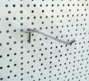 hák jednoduchý 30cm, síla drátu 5mm, zadní rozteč 3mm na děrované panely SU5 nové zboží, likvidace skladových zásob i větší množství