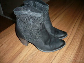 Nabízím černé kožené kozačky na stabilním podpatku zn. Tamaris vel.38. stélka cca 24,5 cm. Vyteplené flísem.Na boku korálková aplikace.Podpatek vysoký 7,5 cm. Nošené, ale v pěkném stavu. Vysoká pořizovací cena. + pošta nebo zásilkovna