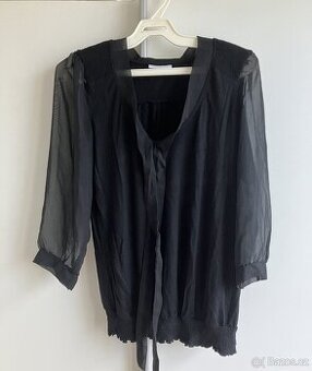 Prodám černou halenku zn. Yessica, vel. S, jednou použitá. Stav jako nová. Materiál pružná bavlna, rukávy průhledné. Do konce listopadu balíkovna 50 Kč.