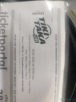 Prodám vstupenku na fotbalovou show Tiki Taka, která se koná 18.2. v Hradci Králové v kongresovém centru Aldis. Prodám za 500, původní cena 1190. Vstupenku pošlu e-mailem.