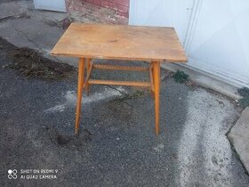 Retro stolek, dřevěná pevná konstrukce ,horní deska ve špatném stavu cca 60x40cm, výška cca 70cm vhodné k renovaci