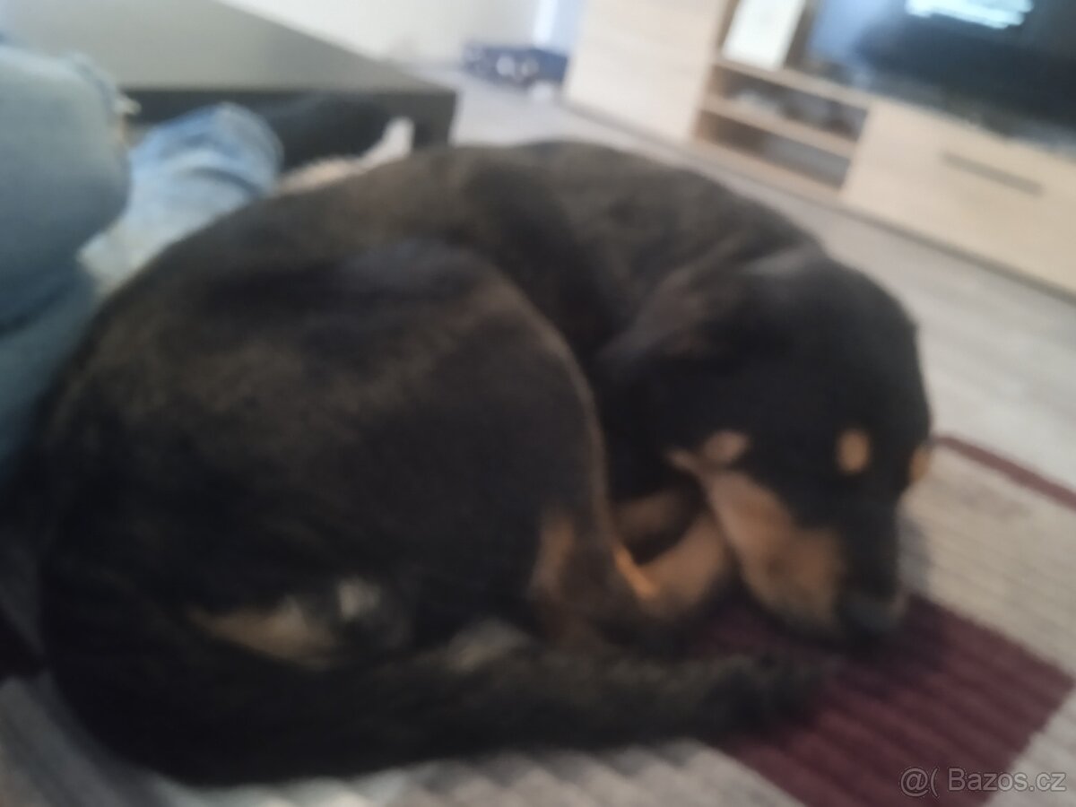 Prodám štěně rotvailera fenka má 2a půl měsíce telefoni kontakt 774229156 4000cena je pevná