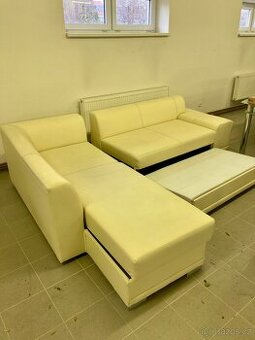 kožená rozkládacín krémová sedací souprava