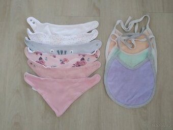 Prodám dětské bryndáčky/slintáčky celkem 9 ks. Asi na dvou jsou trochu flíčky, jinak všechny pěkné a v dobrém stavu. Trojúhelníkové jsou zn. F&F.