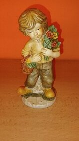 Prodám porcelán soška chlapce s květinami značeno Gilde porcelán vel 18 cm Super stav Hodně starý sbírkový kousek