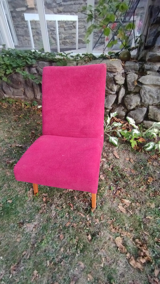 Prodám retro křesílko bez područek. Prostor pro lidovou tvořivost. Pevné.