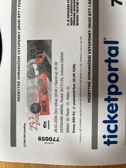 Cena: V textu. Prodám 2 vstupenky na Štěpána Kozuba, Bez debat (Ostravar Aréna 28.2.2026). Sektor B1, řada 10, místa 20 a 21. Původní cena byla 890,-/kus, nyní cena za obě dvě 1500,- Kč.