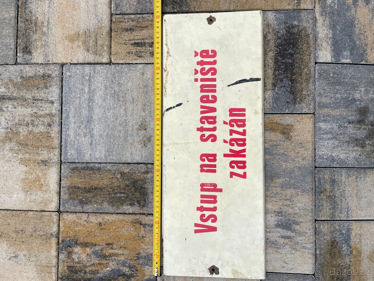 Prodám starou plechovou ceduli. Dobrý stav, dle foto. Vstup na staveniště zakázán.