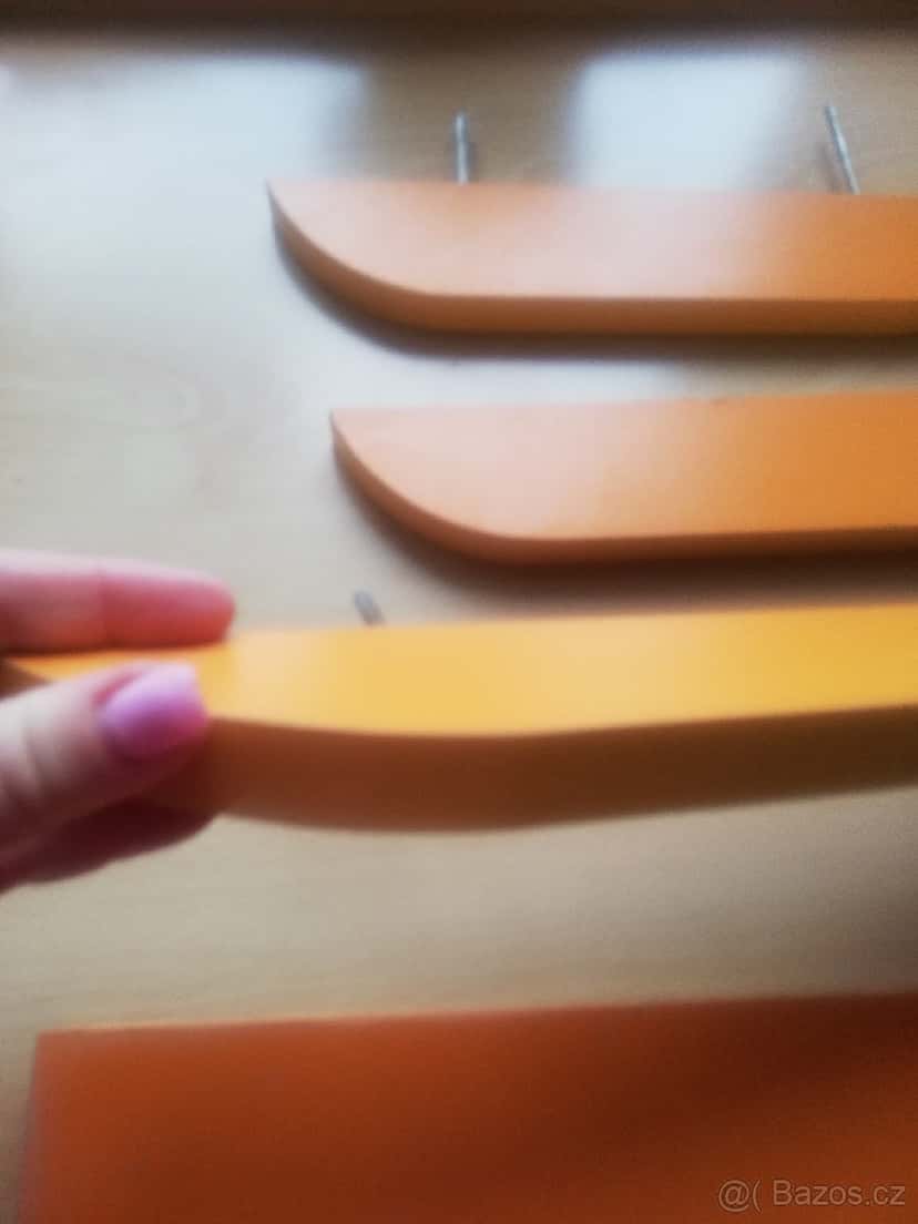Už nevyužijeme, oranžová hrana, žlutá deska .Jsou moc hezké, jen měníme barvu..Do chodby, koupelny nebo pokojíčku.Rozměry různé 20-30 cm...Cena celkem 280,- .Posílám zásilkovnou.