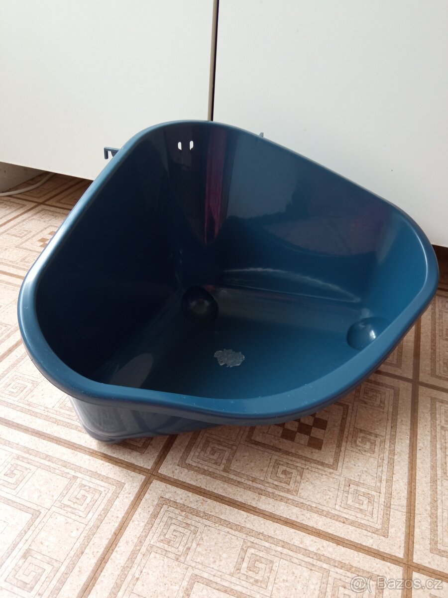 Rohová toaleta pro hlodavce, buď pro morče nebo zakrslého králíčka.