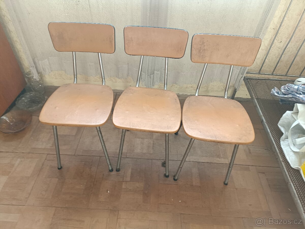 Prodam retro zidle 3ks. Cena za vsechny 500kc. 776578074